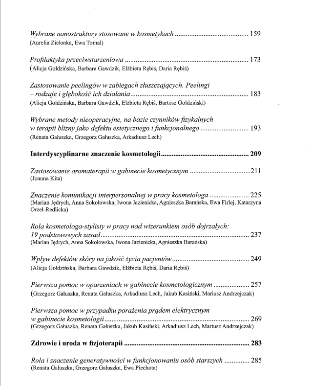 Monografia zawiera treści, które są niezbędne do zapoznania się z nowoczesnymi technikami i metodami stosowanymi we współczesnej kosmetologii. Prezentuje również zagrożenia wynikające z nieszczęśliwych zdarzeń oraz jak należy w takich sytuacjach postępować. Czytelnik ma możliwość zapoznać się z różnymi aspektami dbałości nie tylko o urodę, ale również i zdrowia.