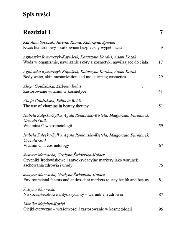 Monografia kierowana jest zarówno do studentów, jak i pracowników ochrony zdrowia, profesjonalnie zajmujących się kosmetologią. Obejmuje istotne zagadnienia o dużym znaczeniu teoretycznym i praktycznym oraz stanowi wartościowy materiał poznawczo-dydaktyczny.