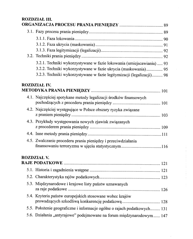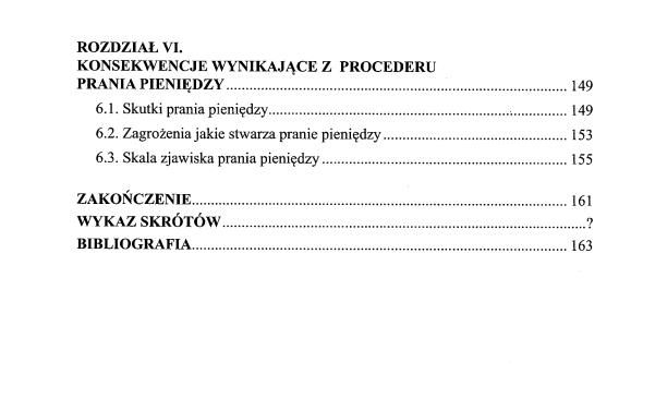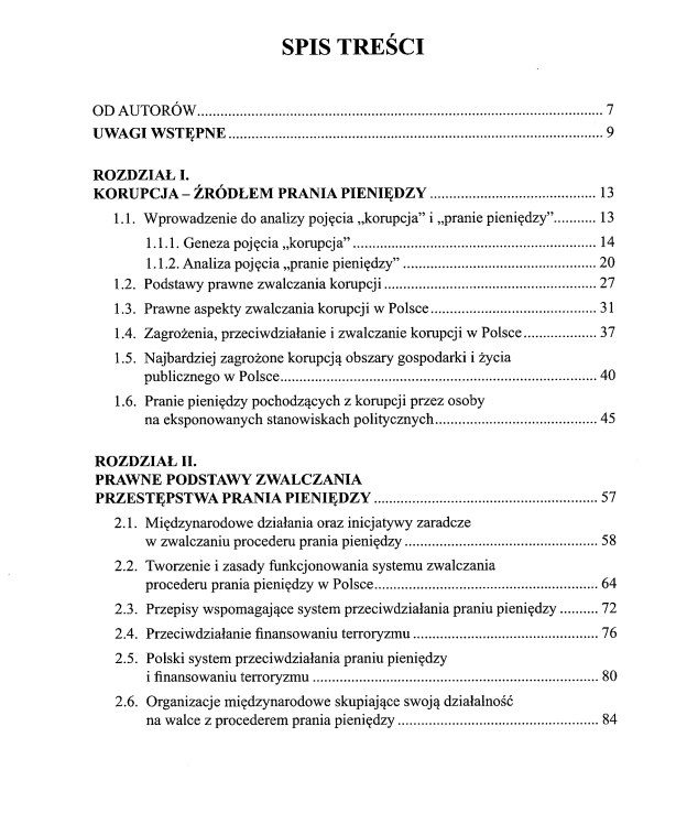 W niniejszej publikacji omówiono istotę procederu prania pieniędzy. Zarysowany został problem ze zdefiniowaniem pojęcia „pranie pieniędzy” i „korupcja”. Przedstawiono zróżnicowane techniki prania pieniędzy, wykorzystywanie oaz podatkowych oraz ekonomiczne skutki prania pieniędzy. Wskazano również na uregulowania prawne i sposoby przeciwdziałania praniu pieniędzy i korupcji podejmowane w Polsce, jak i na arenie międzynarodowej.