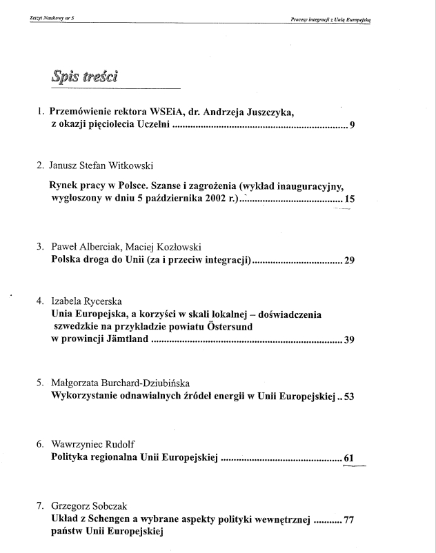 Procesy integracji z Unią Europejską. Zeszyt Naukowy Nr 5, red. Stanisław Rudolf