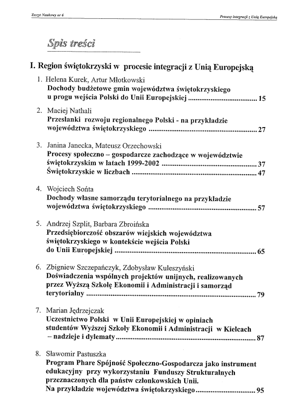 W prezentowanym Zeszycie najwięcej artykułów poświęconych zostało problemom regionu świętokrzyskiego. Zeszyt zawiera również artykuły poświęcone problematyce integracji Polski z Unią Europejską.